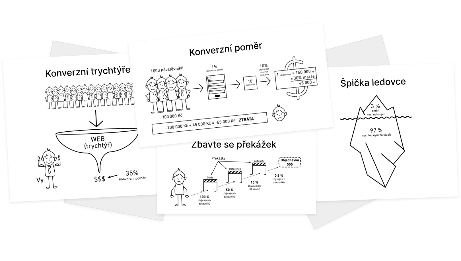 Jezdil jsem na veletrhy a konference, abych získal kontakty a klienty. Investoval jsem do databáze a začal volat cizím lidem a nabízel svůj produkt "nastudeno". Koupil jsem si PR články v novinách. Zaplatil jsem reklamu v rádiu. Najal jsem si (3!) marketingové agentury. Jezdil jsem do Prahy a do Brna na školení on-line prodeje. Nechal jsem si navrhnout nové logo, zaplatil si nový web za 200 000 Kč. Udělal jsem firemní brožury. Začal jsem postovat obrázky na sociální sítě. Dělal jsem všechno, co jsem četl, že se má dělat, což mělo jeden efekt...